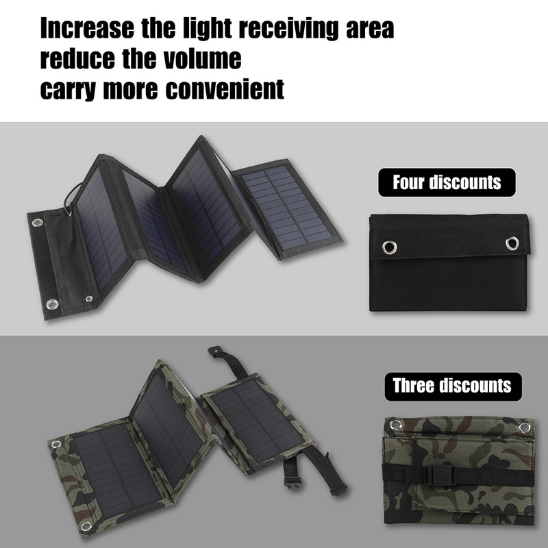 * Taitava suunnittelu: Käyttämällä edistyneitä tuotantotekniikoita, tässä aurinkopaneelin taittopuskissa on taitettava muotoilu, jota voidaan käyttää missä tahansa, joka on kätevä kuljettaa ulkona.